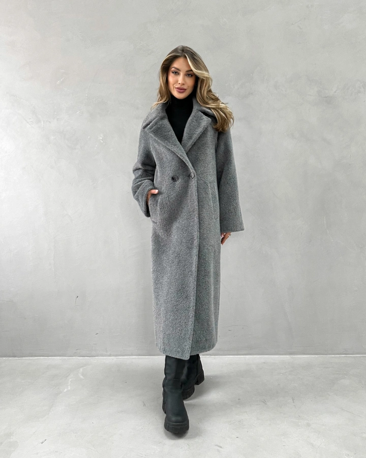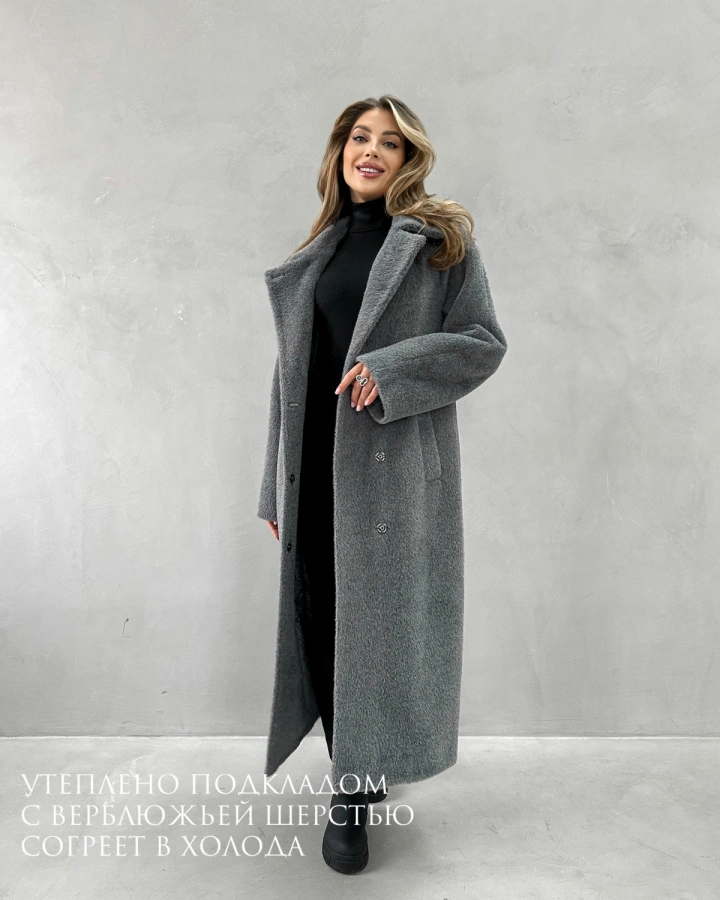 Это темно-серое пальто из экомеха — основа стильного зимнего гардероба. Обязательно посмотрите другие модели в серой гамме — мы предлагаем разнообразные оттенки для создания гармоничного образа!