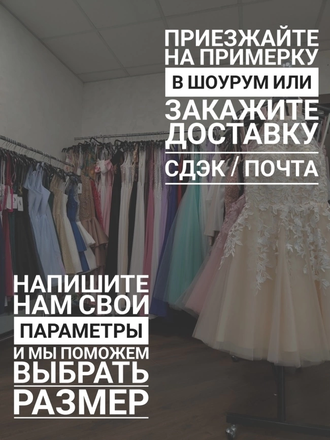 - Кружево: Верх платья украшен кружевом, что придает ему изысканность и подчеркивает его эксклюзивность.