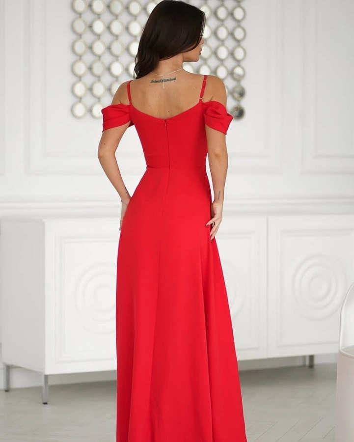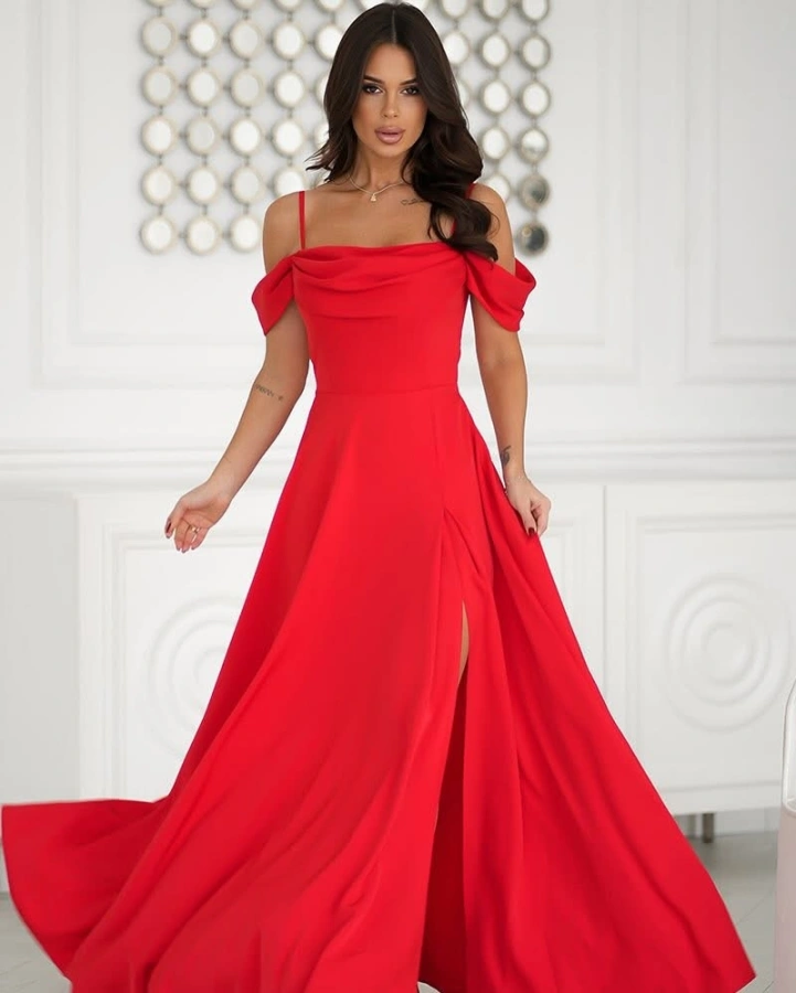✔ Открытые плечи и разрез — создают элегантный вечерний образ