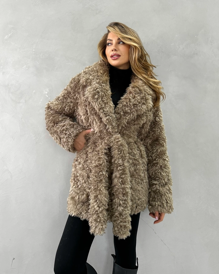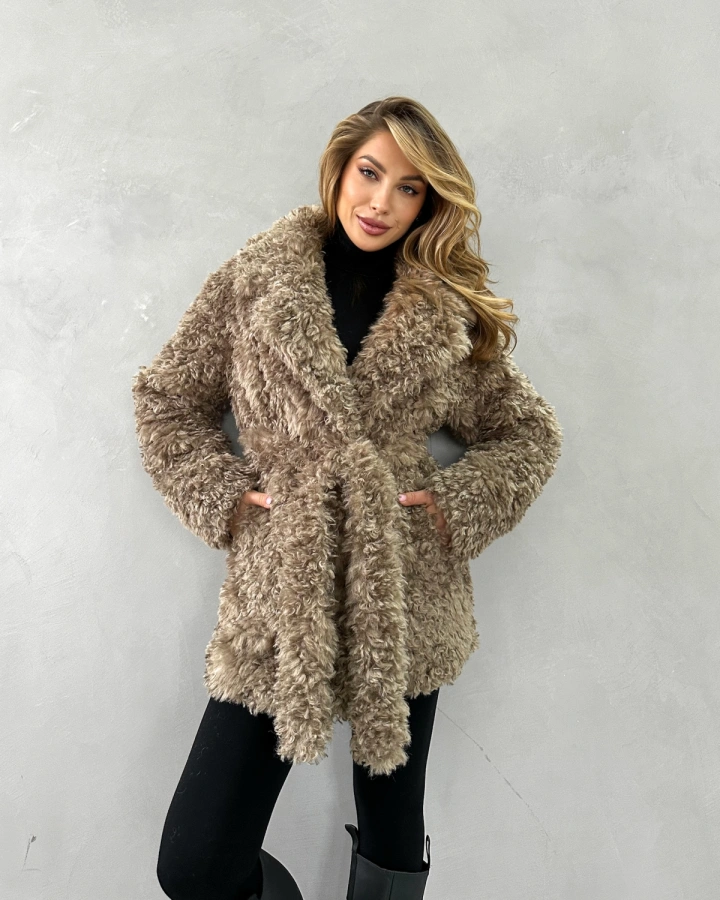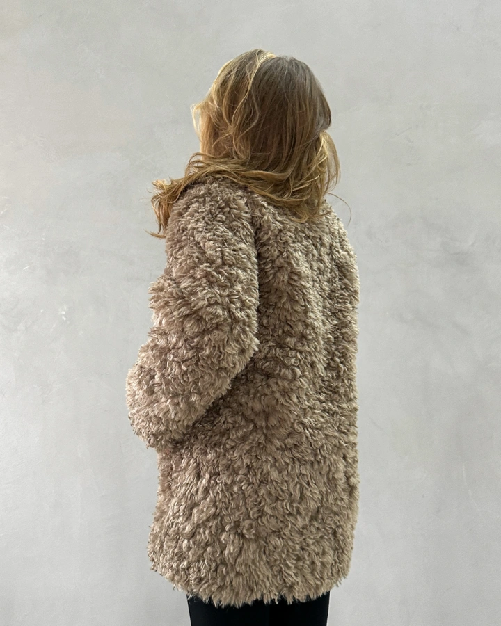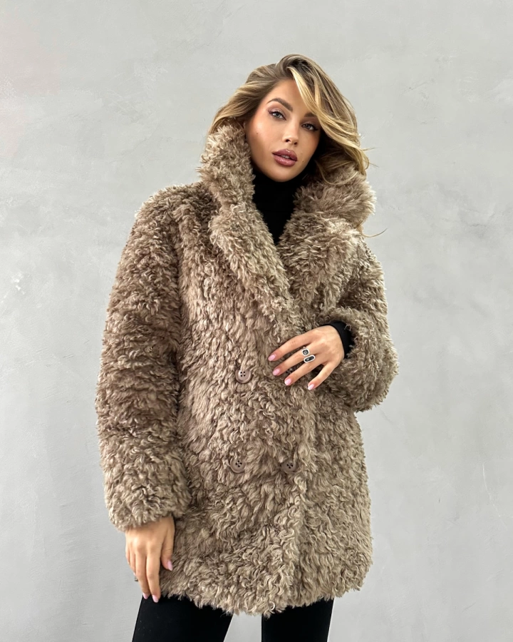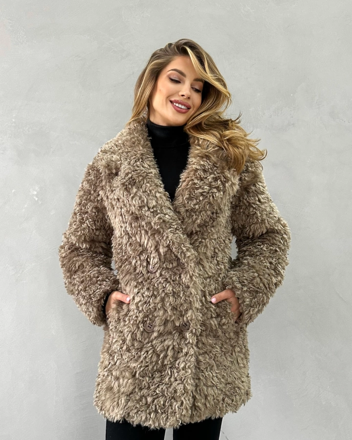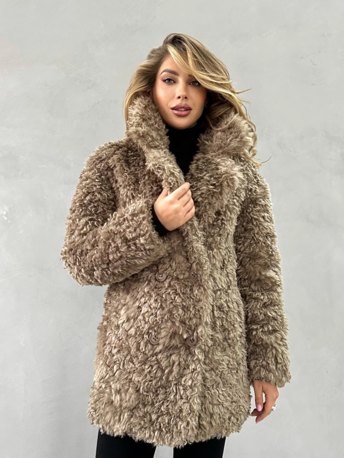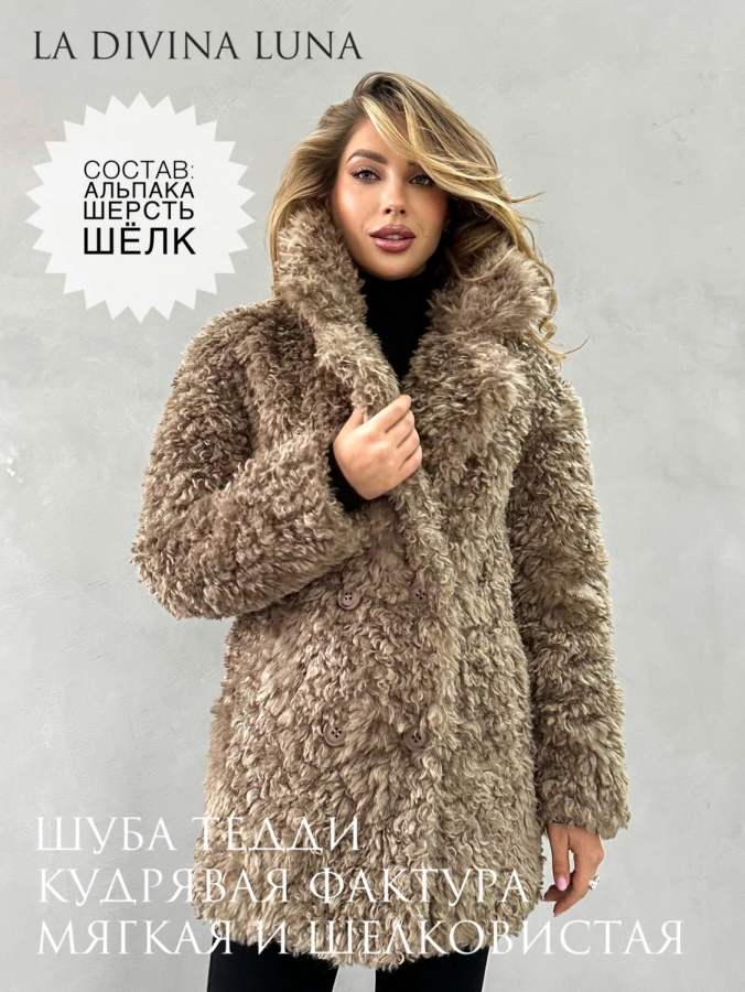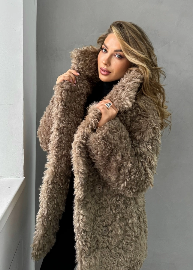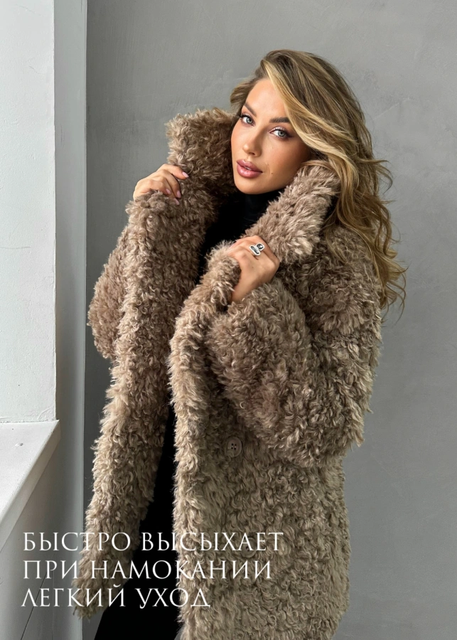Элегантная короткая шуба длиной до бедер с эффектной двубортной застежкой станет ярким акцентом вашего зимнего гардероба. Нежный бежевый оттенок с мягким блеском и фактура кудрявой овечки создают образ современной роскоши. Шуба отличается невероятной мягкостью и приятной текстурой, превосходящей натуральную овчину. Благодаря утеплению подкладом из верблюжьей шерсти с комфортным температурным режимом до -25°С, шуба обеспечивает надежную защиту в морозную погоду. Универсальная модель, которую можно носить как с поясом для подчеркивания талии, так и без него.