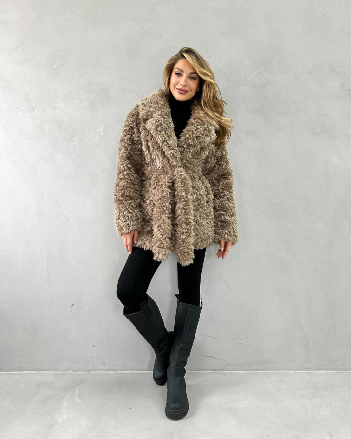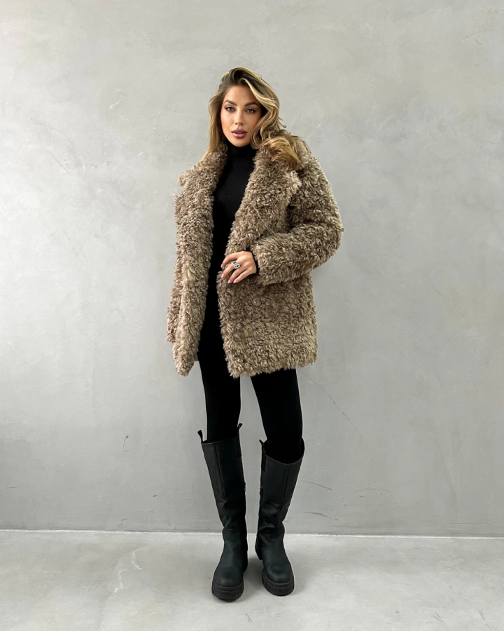 • Материал и утепление: Искусственный экомех с фактурой кудрявой овечки. Утеплена подкладом из верблюжьей шерсти с комфортным температурным режимом до -25°С