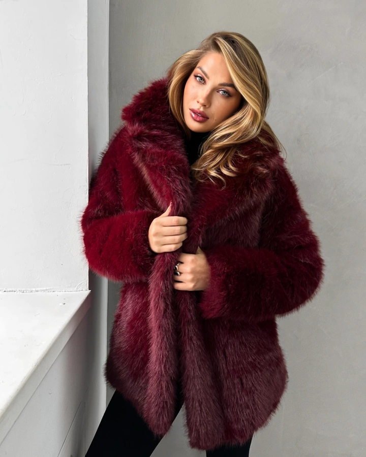 Подарите себе королевскую роскошь зимнего вечера в этой бордовой шубе из экомеха. Насыщенный ягодный оттенок и густой длинный ворс, повторяющий фактуру благородного соболя, создают образ утонченной элегантности. Шелковистая текстура меха невероятно приятна к телу, а в живую цвет переливается еще более глубокими и богатыми оттенками. Укороченная длина 70 см делает модель идеальной для динамичной городской жизни.