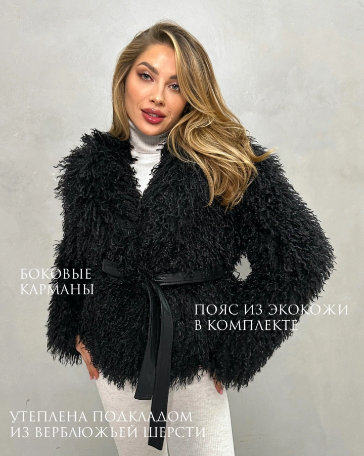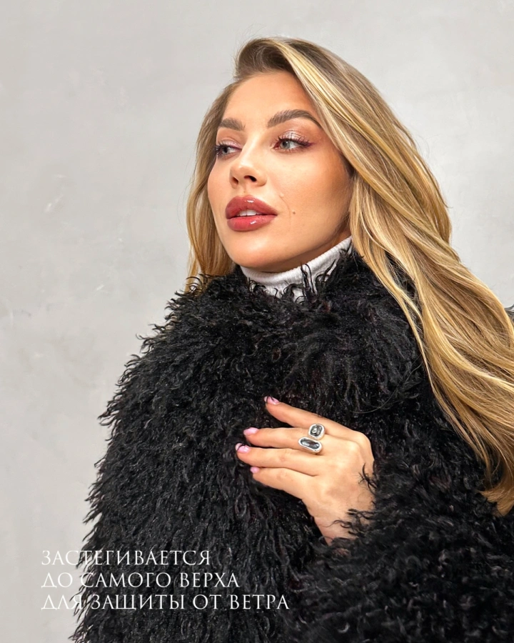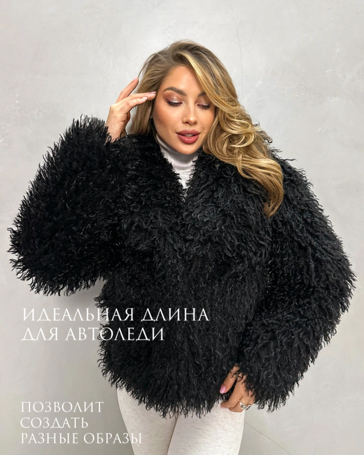 Этот черный полушубок из экомеха станет основой смелых зимних образов. Обязательно посмотрите другие модели коллекции — все они утеплены верблюжьей шерстью и созданы для самых стильных автоледи!