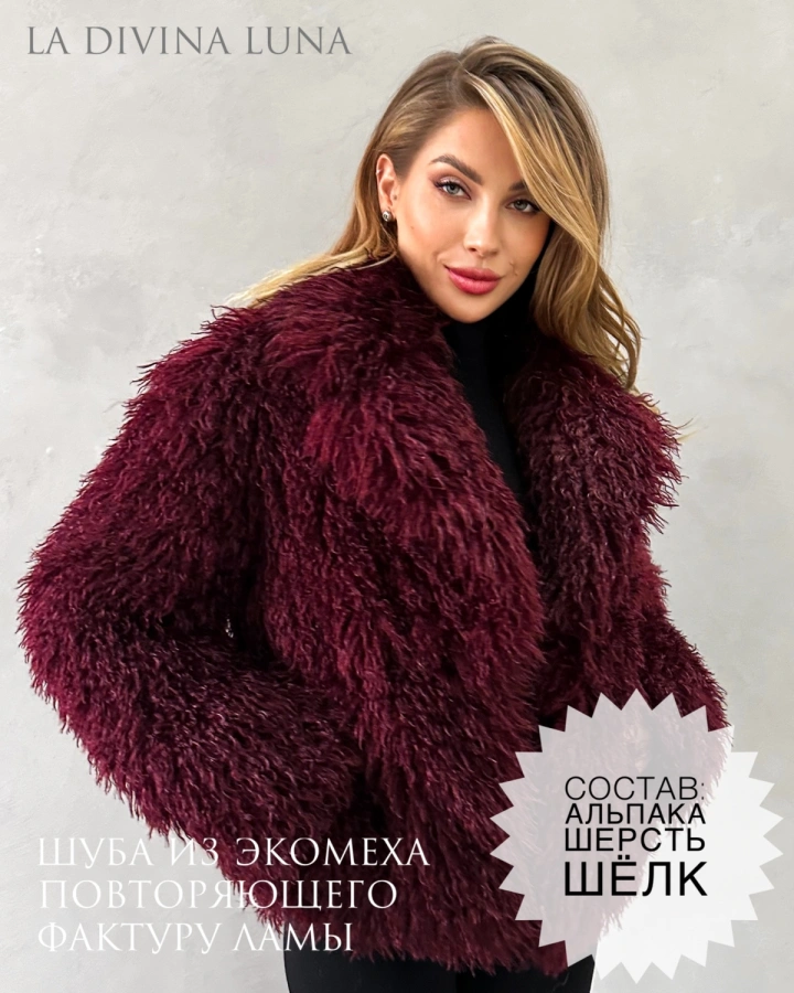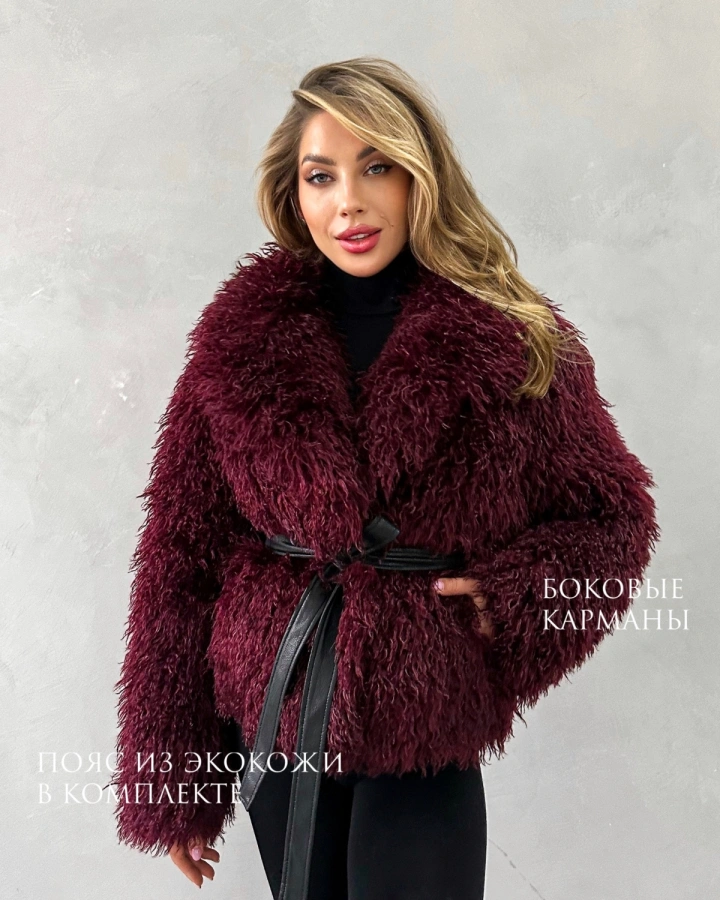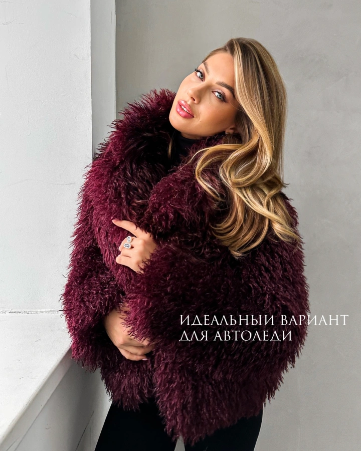 Этот бордовый полушубок из экомеха — для тех, кто не боится быть в центре внимания. Обязательно посмотрите другие модели новой зимней коллекции — все они утеплены верблюжьей шерстью и созданы для российских зим!