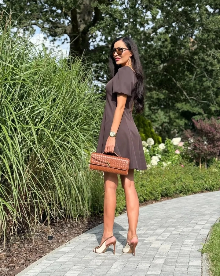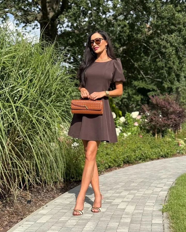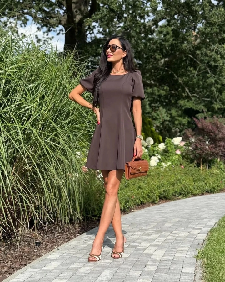 Универсальное платье в теплом шоколадно-коричневом оттенке — элегантное решение для повседневной носки и особых моментов. Скромный крой и лаконичный дизайн делают его уместным для разных ситуаций, от встреч с друзьями до торжественных событий.