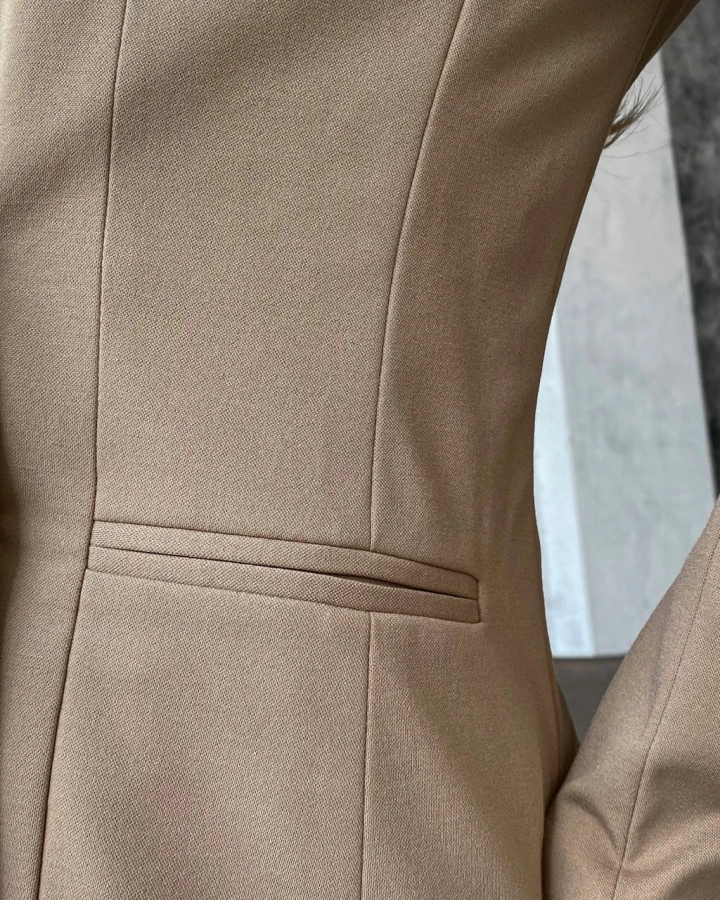 Костюм женский, двубортный, на одно плечо. Представлен также в черном цвете