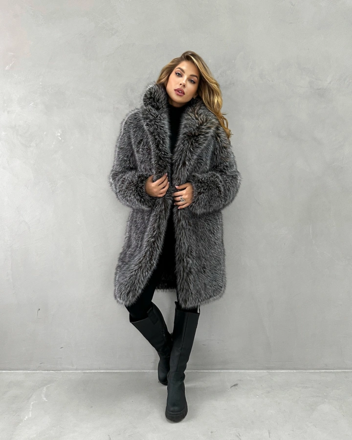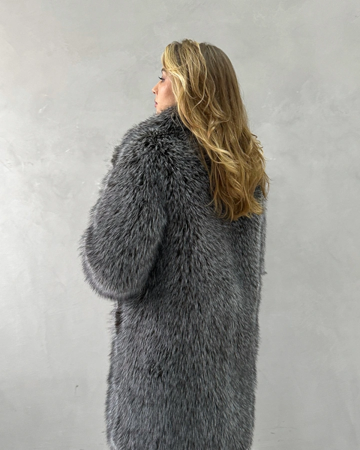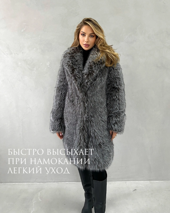 Элегантная шуба классического прямого кроя длиной до колена из восхитительного экомеха премиум-класса, созданного преимущественно из натуральных компонентов, повторяющего фактуру чернобурой лисы. Длинноворсный мех с природным перистым окрасом в бело-серо-черной гамме создает объемный и невероятно эффектный силуэт. В жизни мех выглядит еще более насыщенным и пушистым, чем на фотографиях. Благодаря двойному утеплению — самому меху и специальному подкладу — шуба выдерживает морозы до -35°С, обеспечивая максимальную защиту в самую суровую зиму.