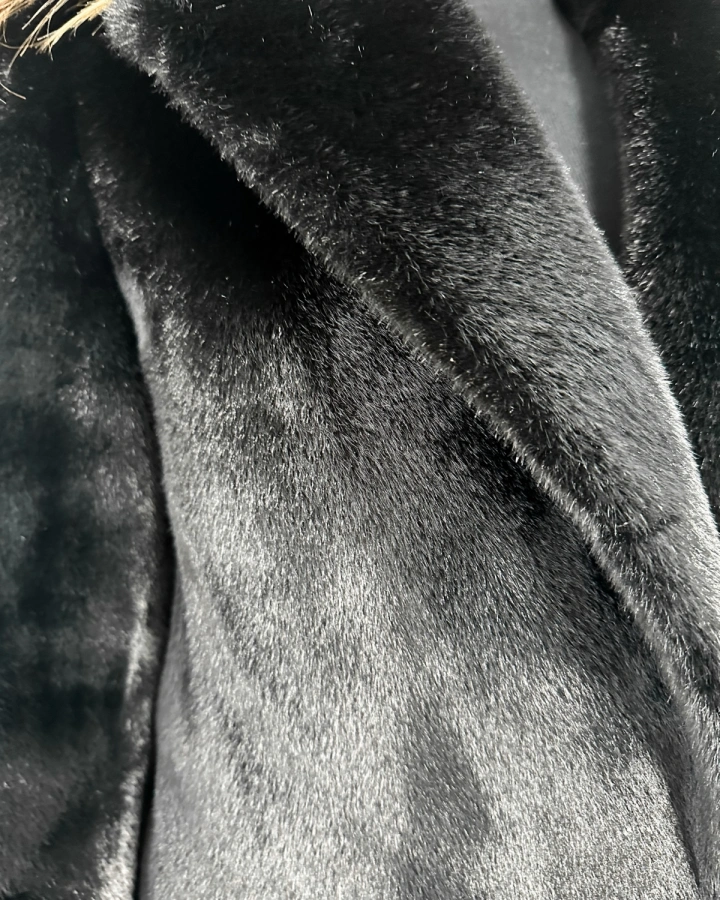 Элегантная шуба миди из экомеха под черную норку, создающая идеально стройный силуэт без лишнего объема. Модель с застежкой на запах подчеркивает талию и мягко облегает фигуру. Благодаря высококачественному материалу с благородным переливом изделие выглядит дорого и статусно. Очерченная линия плеча и втачной рукав создают безупречную посадку. Большой воротник, застегивающийся до самого верха, обеспечивает надежную защиту от ветра и мороза. Как и все модели нашей коллекции, шуба утеплена подкладом из натуральной верблюжьей шерсти.