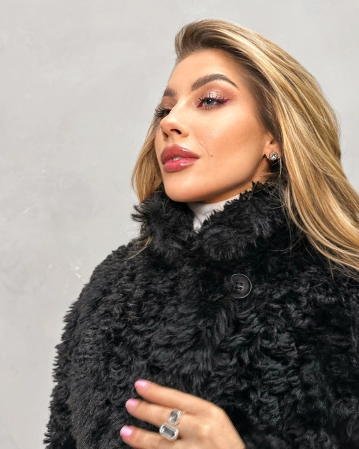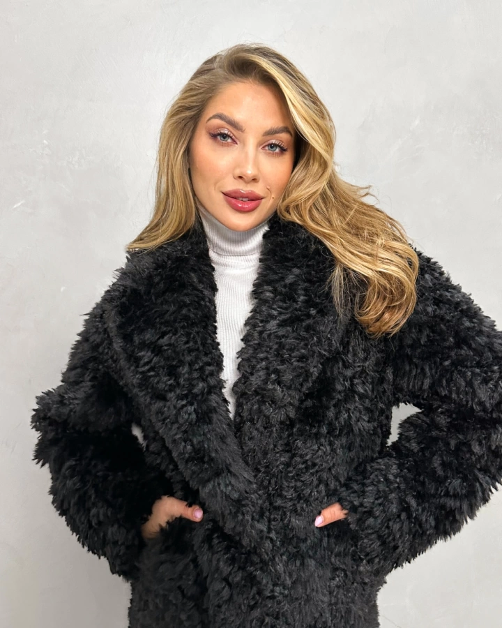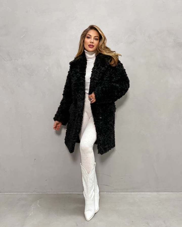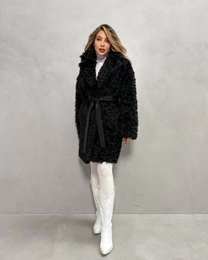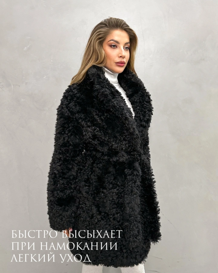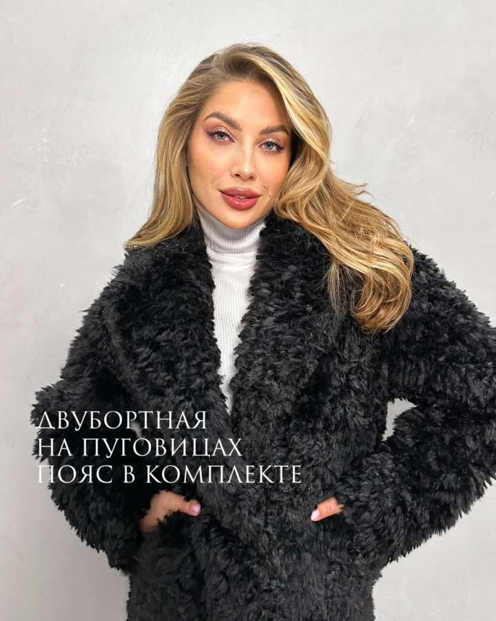 Сочетайте с платьями-миди, зауженными брюками и стильными ботильонами. Черный цвет позволяет создавать как монохромные комплекты, так и контрастные сочетания. Дополните образ кожаными аксессуарами — пояс из экокожи подчеркнет талию, а меховой добавит роскоши.