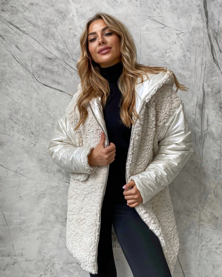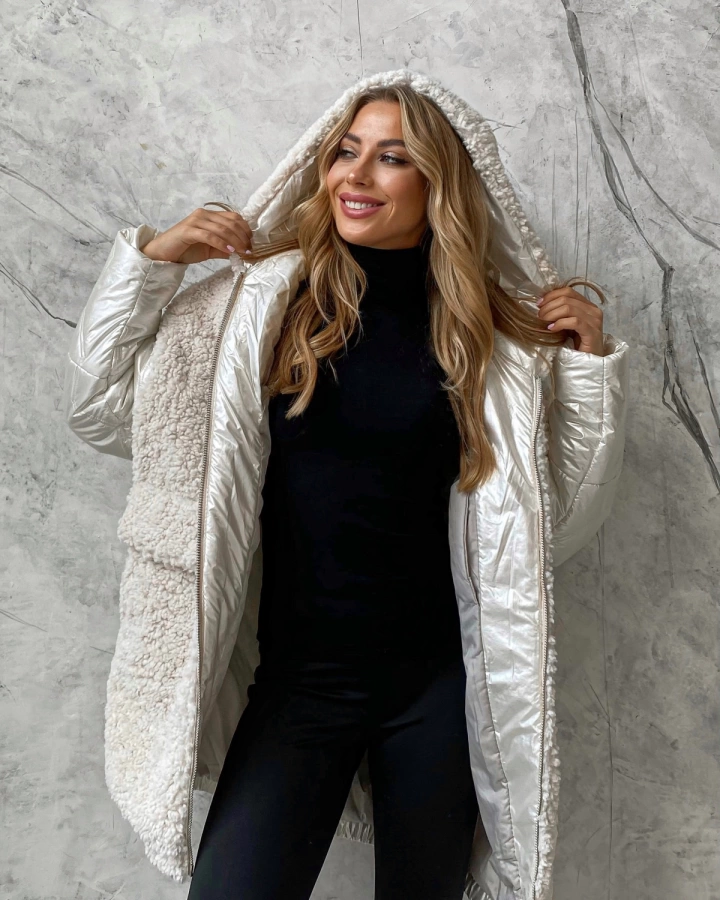 Зимняя куртка-пуховик тедди с капюшоном